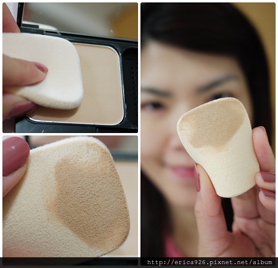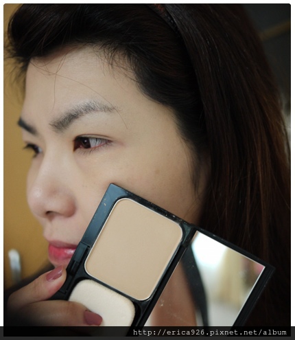 姐姐我超豪邁的以盒內附的粉撲沾取粉餅!