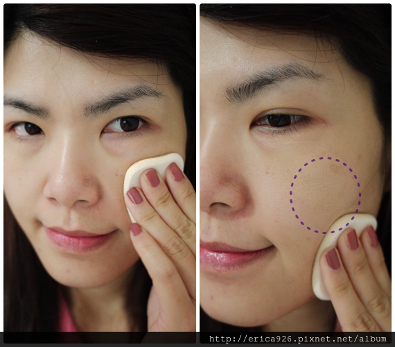 在上粉餅之前僅上無色的防曬隔離霜,全臉無使用任何遮瑕產品耶!