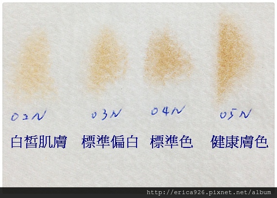 02N 白皙肌膚 / 03N 標準偏白 / 04N 標準色 / 05N 健康膚色