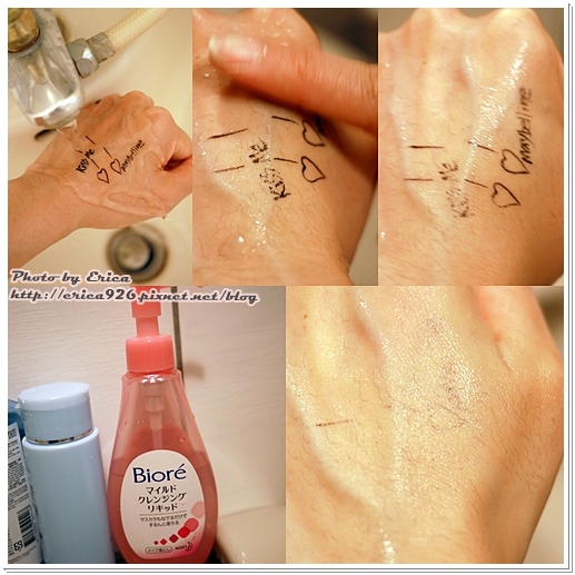 2. 蜜妮深層卸妝精華 > 用手指撮揉 > K完全卸除乾淨、M還看的到一咪咪 (下圖)