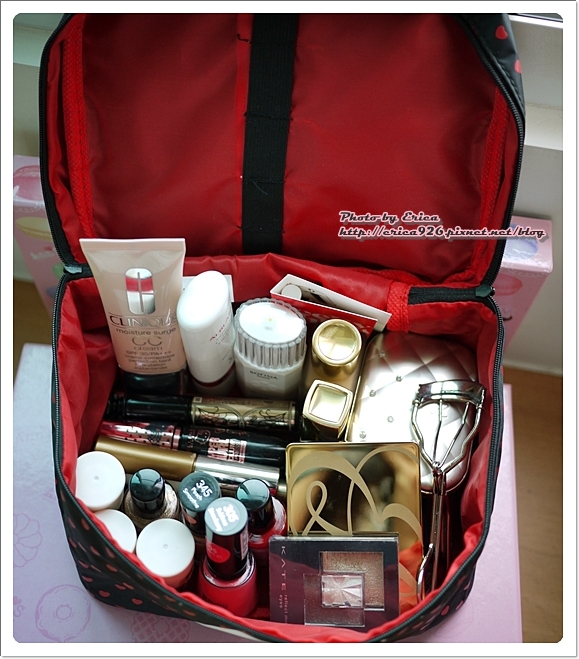 這個大的化妝包沒有啥隔層,像有高度的隔離霜、粉底液們,大家都可以排排站好!